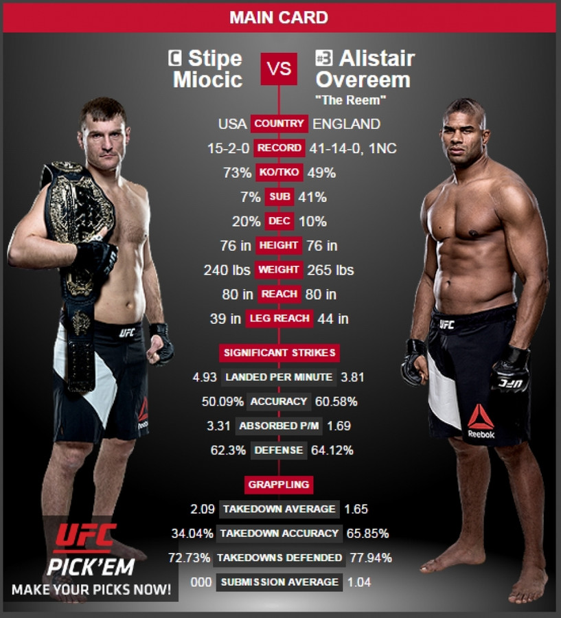 Side By Side Stats Comparison Alistair Overeem Vs Francis Ngannou Edition Ufc 218 Mma Imports